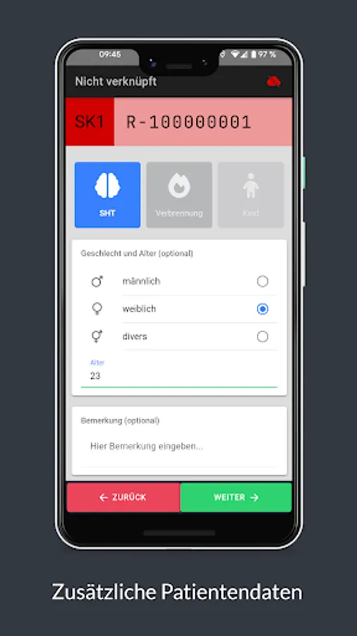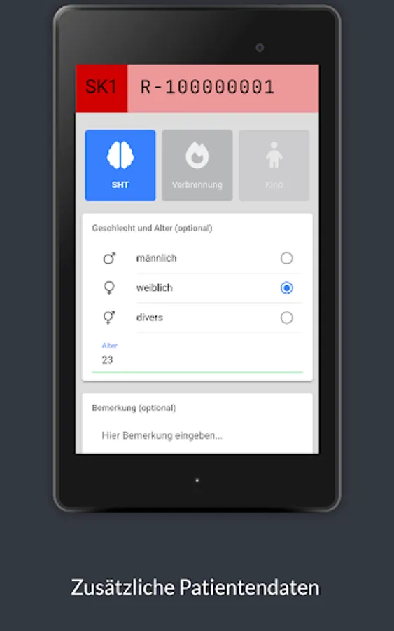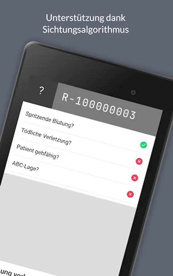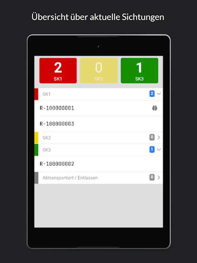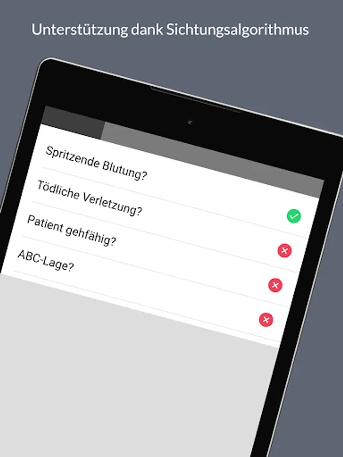 A quick overview of patients is important for an operational command in small as well as large operational situations. For this purpose, standards such as triage classes and screening algorithms have been established. With Sighting PRO it is possible that every helper is able to register patients.