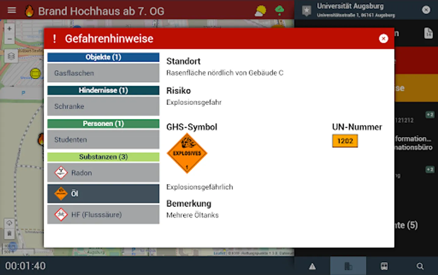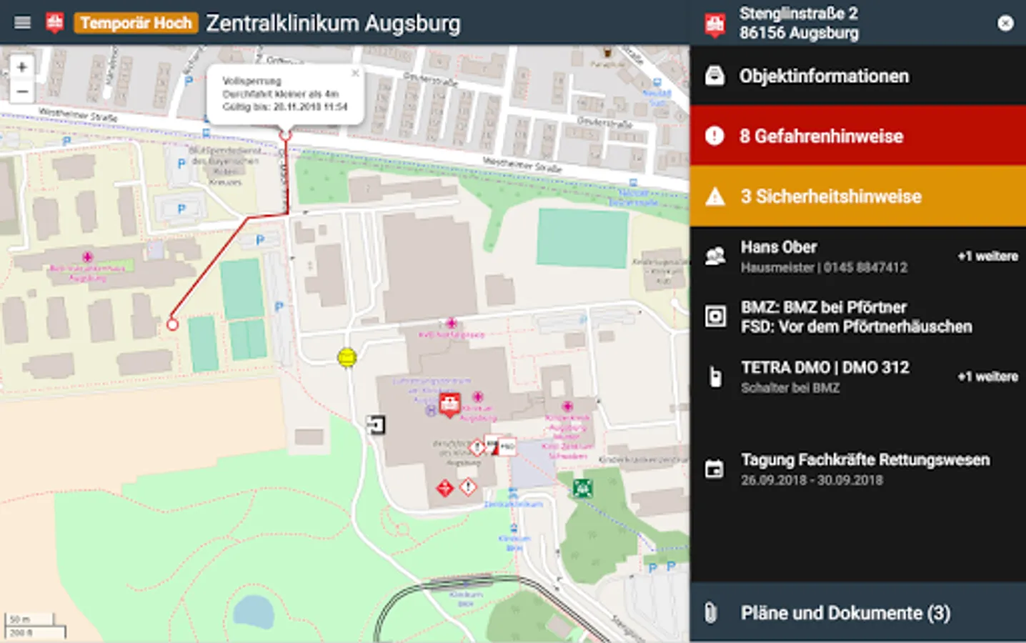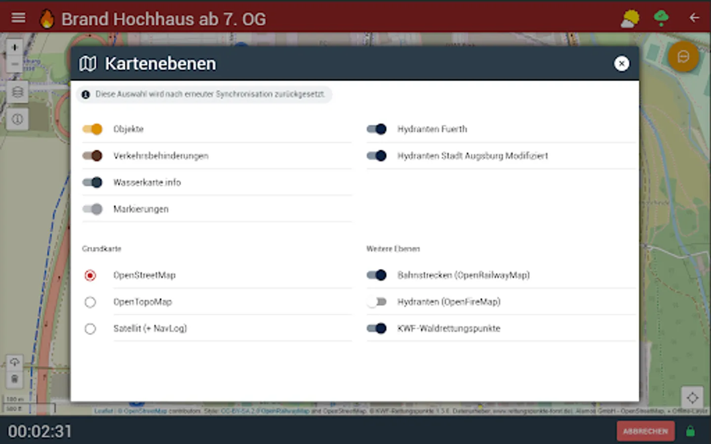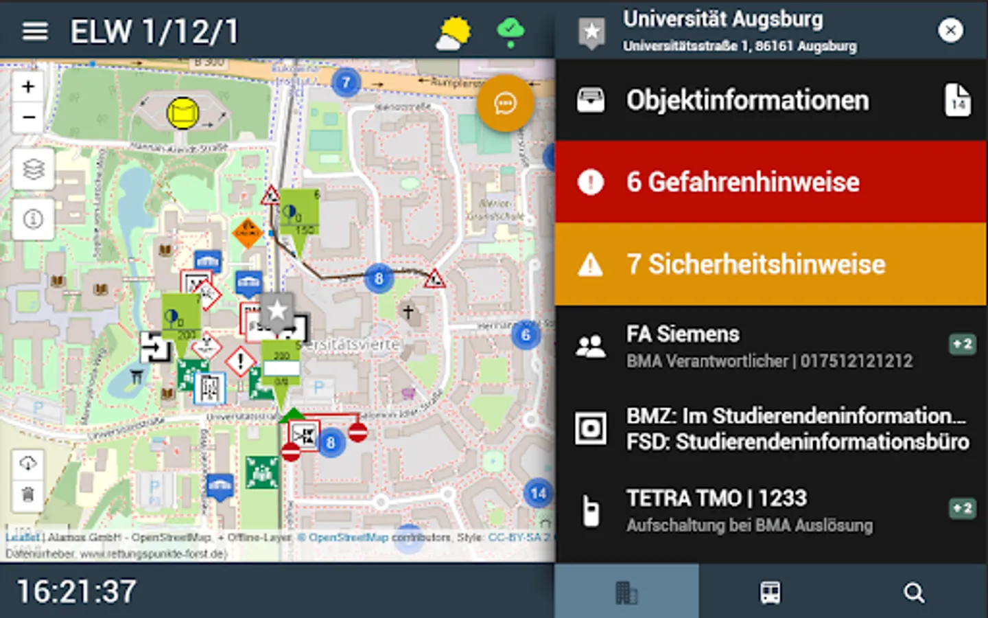 An additional bookable hazardous substances database, weather data display and NavLog data for aid organizations in Bavaria, Baden-Württemberg, Rhineland-Pfanz and NRW are integrated in the app.
