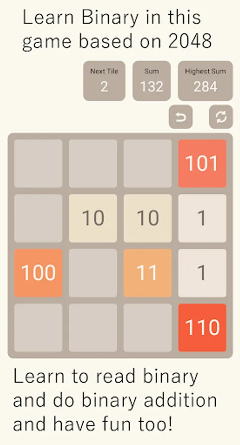 Learn binary by using it in this "combine the identical numbers" game based on the hit puzzle game. No ads to distract from learning. If you appreciate our approach to learning binary consider buying the paid version as your thanks.