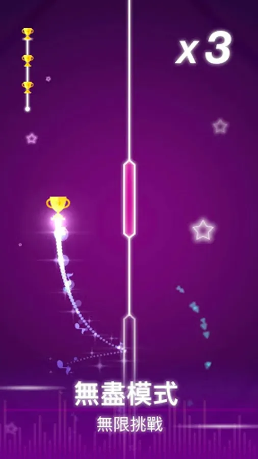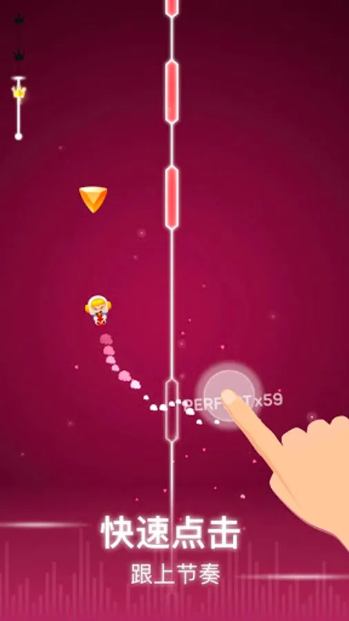 Feel the rhythm of the music, tap the screen to manipulate the movement of the light point. Step on the rhythm point and work hard to get more points and diamonds! Dancing your fingers, come and experience the excitement of the strongest rhythm!