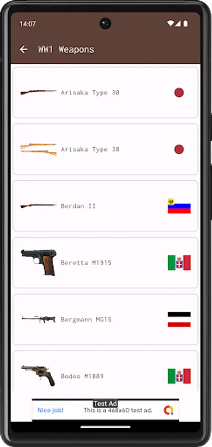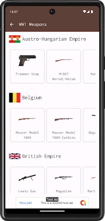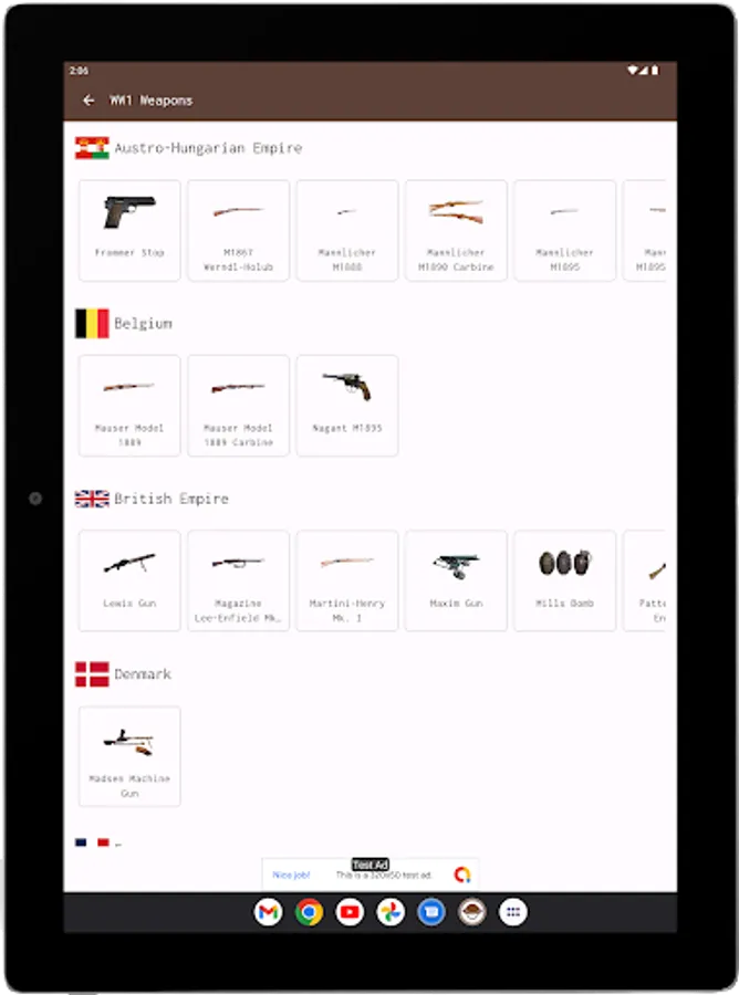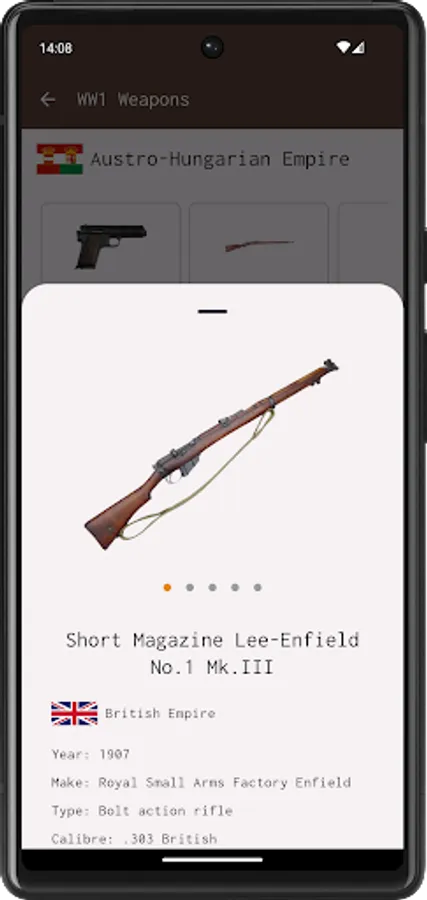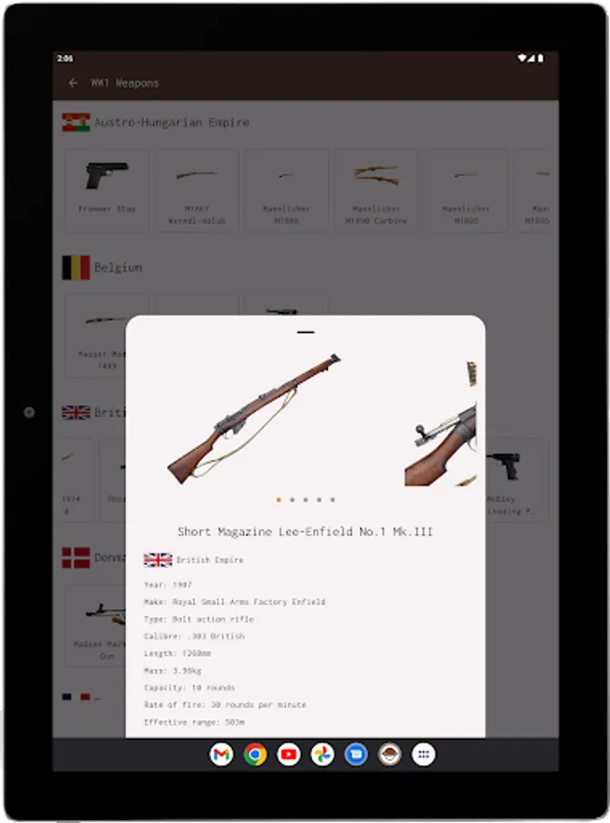 A comprehensive catalogue of weapons from the First World War (1914-1918) with photos and general information for use by history students or firearms enthusiasts