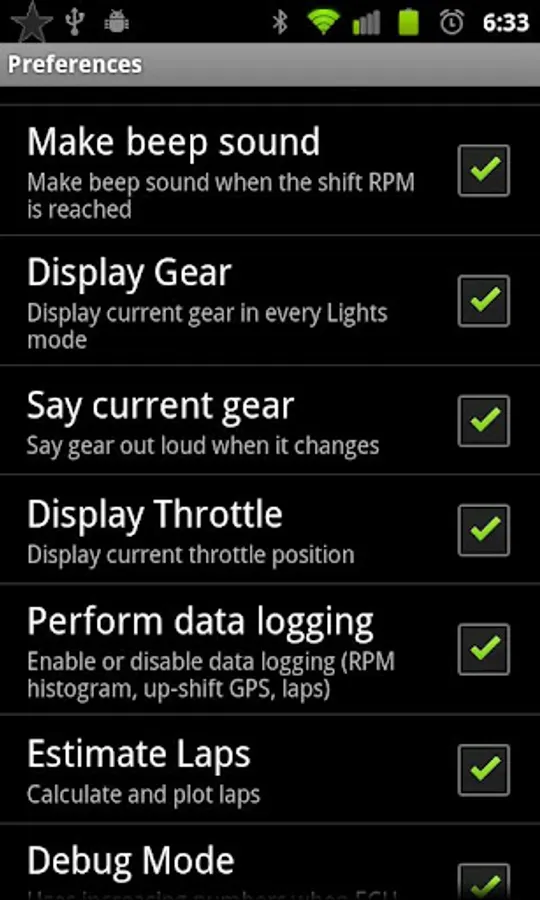 1. Options to display Current Gear mode (auto-learn or manual learn mode). Current gear can be configured to be spoken by the phone. Manual learning mode will provide the most reliable gear detection. Especially for automatics :) The learned gears will be saved in a current Vehicle Profile in Torque and loaded up subsequently.
