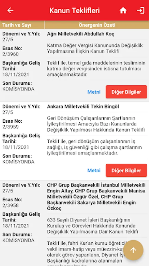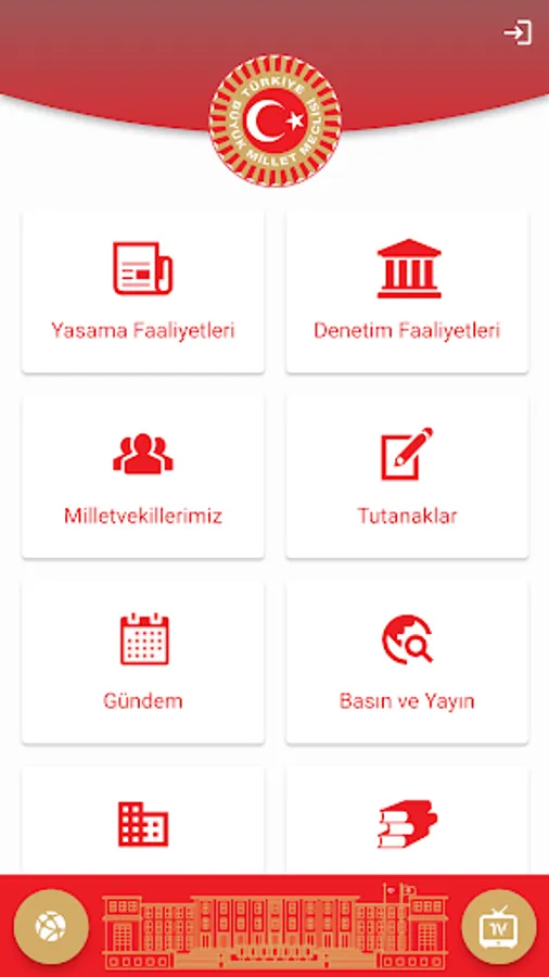 The sub-headings of this application, which is offered for the purpose of easy and timely access to the parliament's latest works, parliamentary agenda, publications and news in all other fields, as well as the legislative and auditing activities of the Grand National Assembly of Turkey, are as follows: