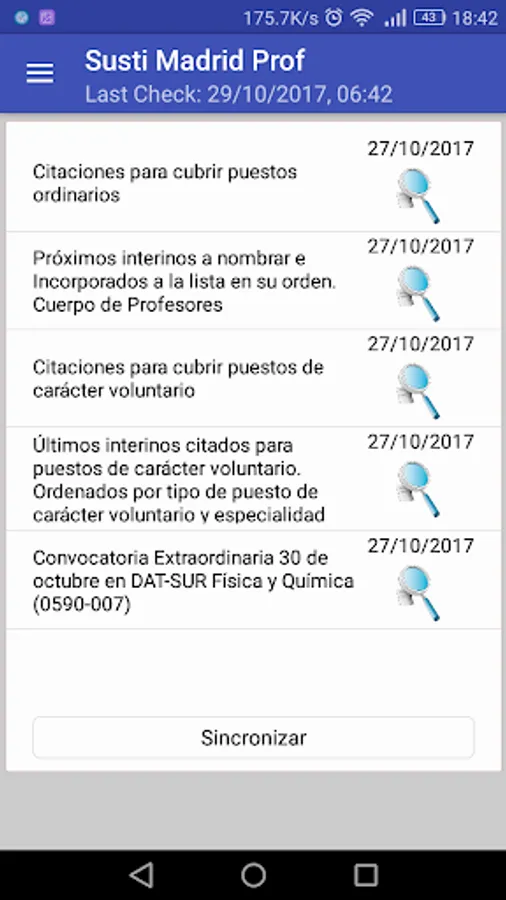 AlarMaster is an application developed for meantime @ s maestr @ s primary or Professor @ s secondary, FP and Special Regime of the Community of Madrid, Aragon and Castilla La Mancha, will warn updates the lists and if you've been selecciond @. Its use is simple, simply by entering the full name application will check the lists for you (the update time can be set) and when it detects any changes alerted by a notification, current listings AlarMaster are: