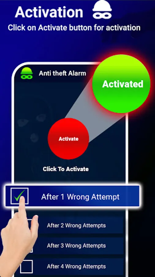 Alarm on wrong password and intruder picture: this app will alerts you about who is try to unlock your phone or you can say who touch my phone with the intent to unlock my Pin or Password. It’s a best security app which alerts you when some theft or spy try to unlock your phone by alarming. It’s give you alarm on wrong password .when intruder enter wrong password or pattern again and again its start alarm 1.