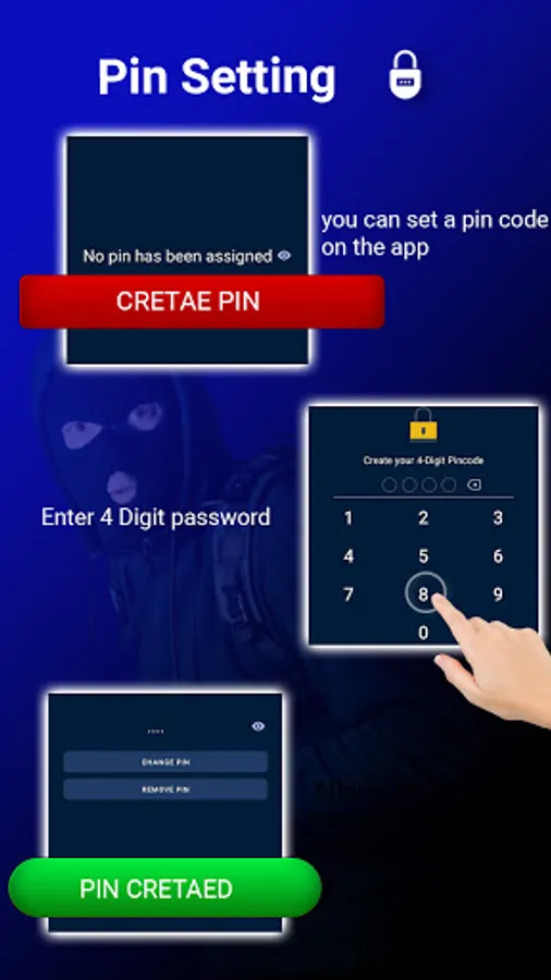 Take the perfect selfie of intruders who try to touch your phone lock or try to open phone lock.