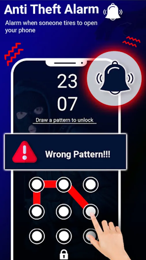 Intruder selfie or photo on Wrong Pattern: now a days every one wants to secure its mobile data form thefts and spy and wants an app that tells them who try to unlock my phone or who try to unlock their phone in their absence to steal their phone private data.so this app named alarm on wrong pattern or security code and intruder selfie is best mobile security app which tells you who try to break phone security like your pattern password and pin lock or PIN password. Our app alarm on wrong pattern will gives you intruder alert alarm and Takes a pictures when password is incorrect android phone. There are many apps that take pictures when wrong password is entered on google play store but none of those intruder selfie apps gives you alarm on wrong password. So our app selfie on wrong password and alarm on wrong pattern is best anti spy free app. it’s an intruder selfie app and perfect selfie app which takes a perfect selfie of theft or spy and save it to your phone gallery and also in your intruder selfie app gallery so that you can find who try to unlock your phone or theft easily. Suppose you phone is on charging and someone try to unlock you phone pattern then this intruder selfie and alarm on wrong pattern app take selfie of that theft and also starts alarm if intruder tried again and again to unlock your phone. It’s a best security alarm app for your phone or you can say a simple alarm system in your phone through this app which alerts you about your phone security in case of emergency. Its ring home security for your phone which saves you phone to be stolen intruder alert alarm. It’s like a door alarm when someone break into your phone by breaking this security door alarm in the form of password or pattern then its start alarming and also take selfie of that theft.