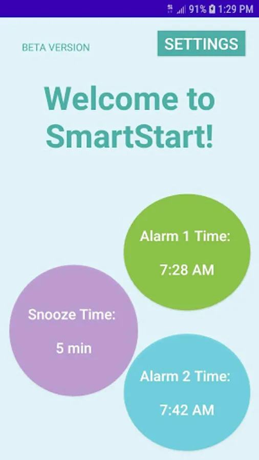 SmartStart features two independent alarms that can be used at any time of day and can be set individually or together. With easy-to-set times and a five minute snooze, this app will be sure to start your day off right.
