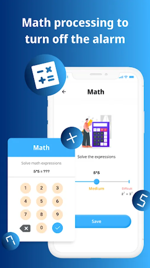 ✔ Math alarm: Solve simple to advanced math problems that wake you up!