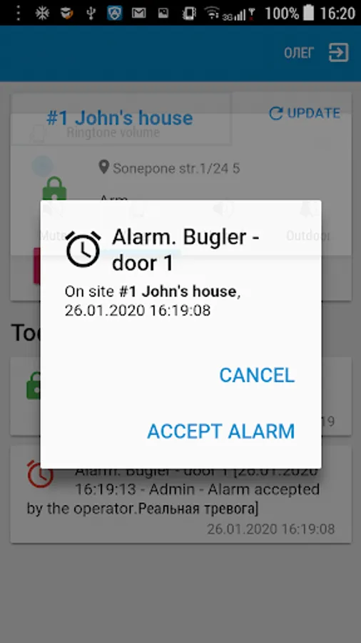 AlarmFront app is developed to be used by clients of sucurity companies and has follwing functions: