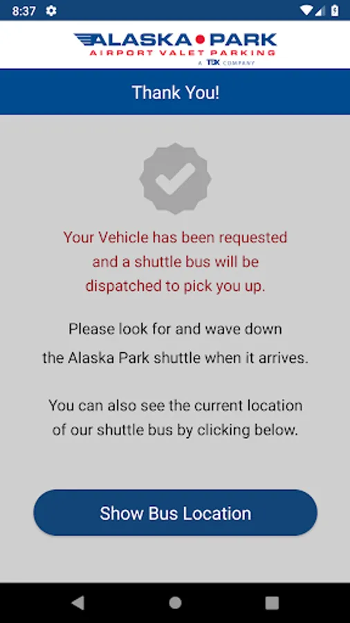 The Alaska Park Valet app allows Alaska Park customers to request the return of their vehicle and view real-time location of shuttle buses.