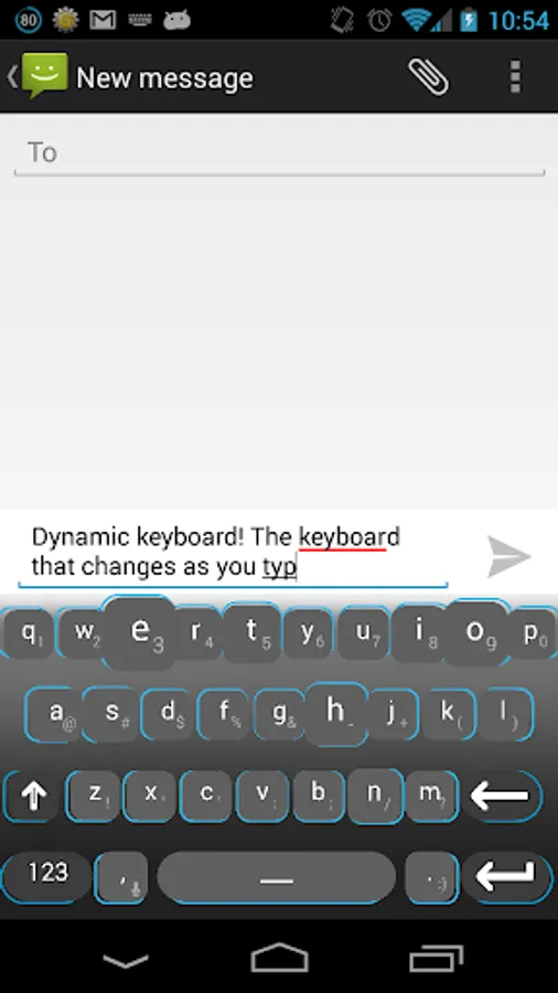 Rather than being obtrusive and ugly like predictive typing, this keyboard aids your current method of typing to increase accuracy without wasting screen space.