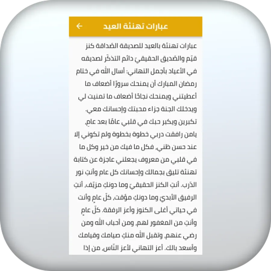The Eid Mubarak application was developed and made and presented in your hands, and it contains all that a Muslim and non-Muslim needs in the blessed Eid Al-Fitr, such as how to perform Eid prayers, the takbeers of Eid, the Sunnahs of Eid Al-Fitr on the authority of the Prophet Muhammad, may God’s prayers and peace be upon him and his family, and Eid supplications And prayers for forgiveness. The Eid Mubarak application also contains types of Eid congratulations, Eid congratulations to the friend, Eid congratulations to the friend, Eid congratulations to the husband, Eid congratulations to the wife, and the Eid Mubarak application also contains congratulations to the brothers and sisters