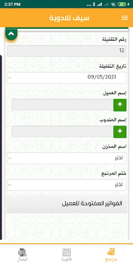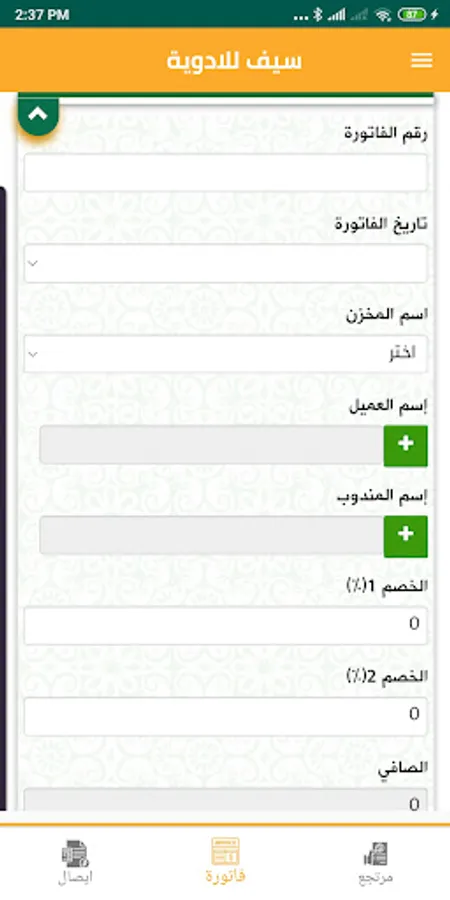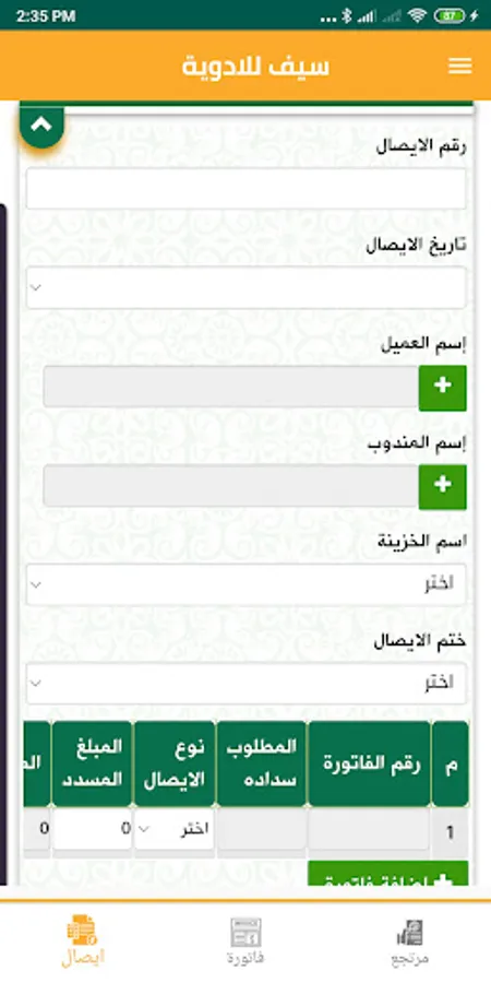 هو تطبيق يمكن المندوب الخاص بالشركة بتسجيل دخول لدينا ومن ثم يستطيع تسجيل ايصال او حذفه او تعديله وتسجيل مرتجع او حذفه او تعديله عمل فاتورة للمبيعات التي قام بها