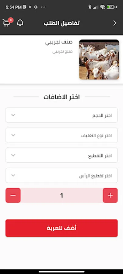 Download the application on your mobile phone, and after the download is complete, open it and choose the city and then the category of carcass that you need, from which choose the size, cutting method, packaging and head options, if any, and then add them to the cart, you can return to the home page to request more carcasses and add them to the cart or go to the cart to complete the order process .