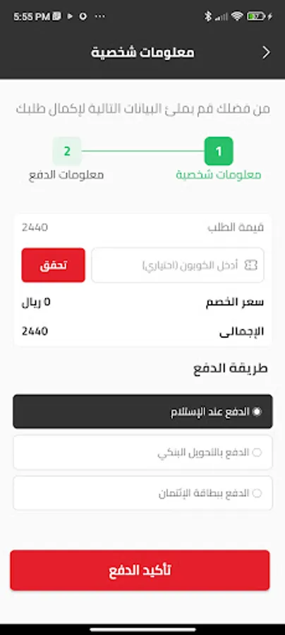 The application provides payment options suitable for all customers (payment service upon receipt - bank transfer service)