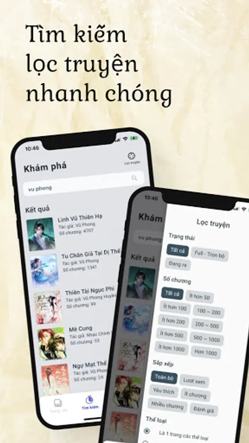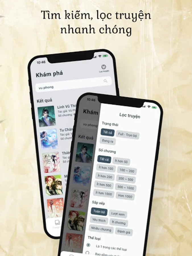 Trình tìm kiếm, lọc truyện dễ dàng.