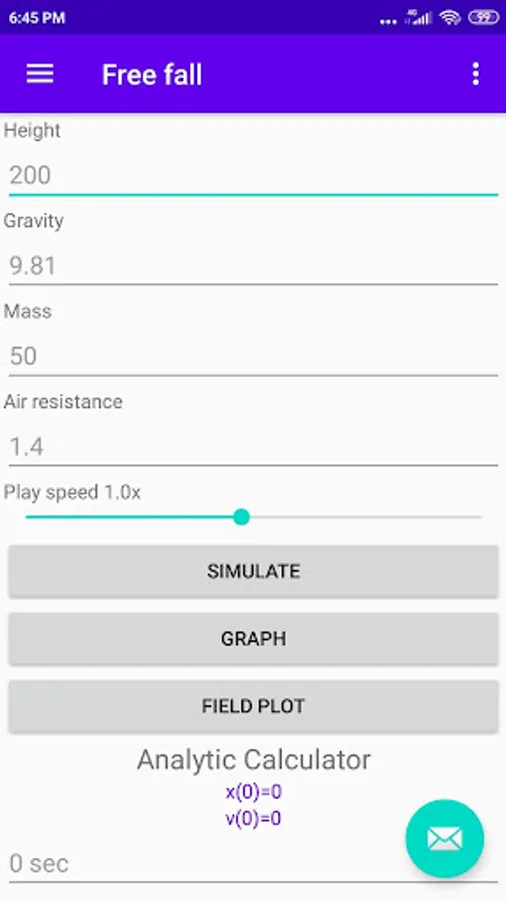 Physical applications of ordinary differential equation allows you simulate free fall with air resistance, harmonic motion , resistor capacitor circuit and exponential growth, it also allows you graph and see slope field.