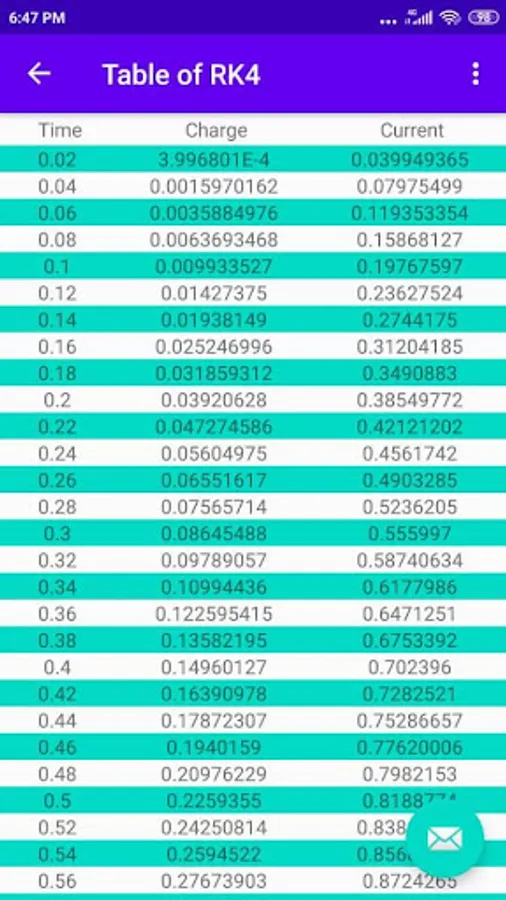It is calculated with numerical approximation of Runge Kutta 4 and graphing tool allows you to see relevant data and table shows first 200 data.