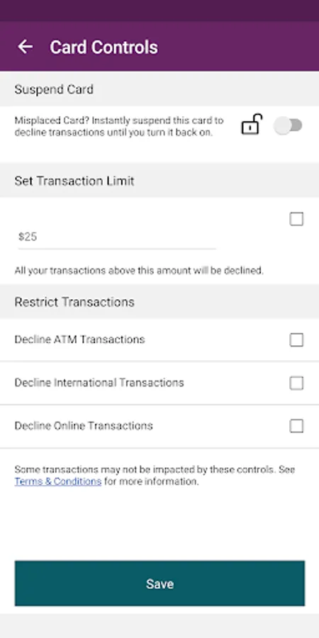 For the AlaTrust Card Control app, you will create a new username and password. Use this app in conjunction with AlaTrust Credit Union Mobile Banking app to get the most benefit out of your card.