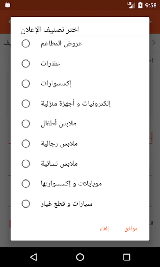 سيارات و قطع غيار، موبايلات و إكسسوارتها، ملابس نسائية، ملابس رجالية، ملابس أطفال، إلكترونيات و أجهزة منزلية ، إكسسوارات، عقارات، عروض المطاعم،وظائف، خدمات أخري
