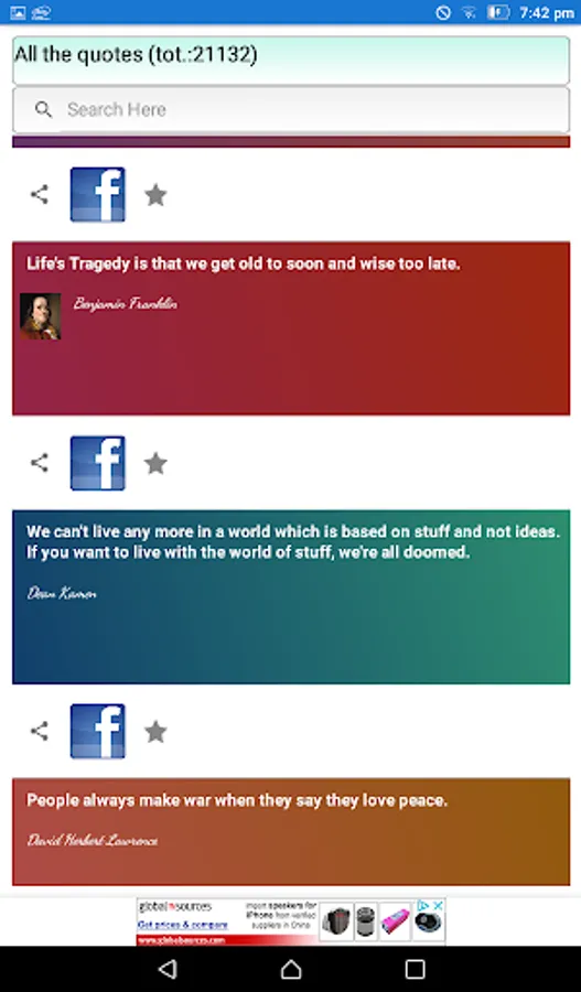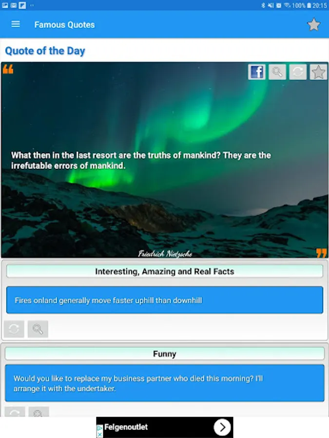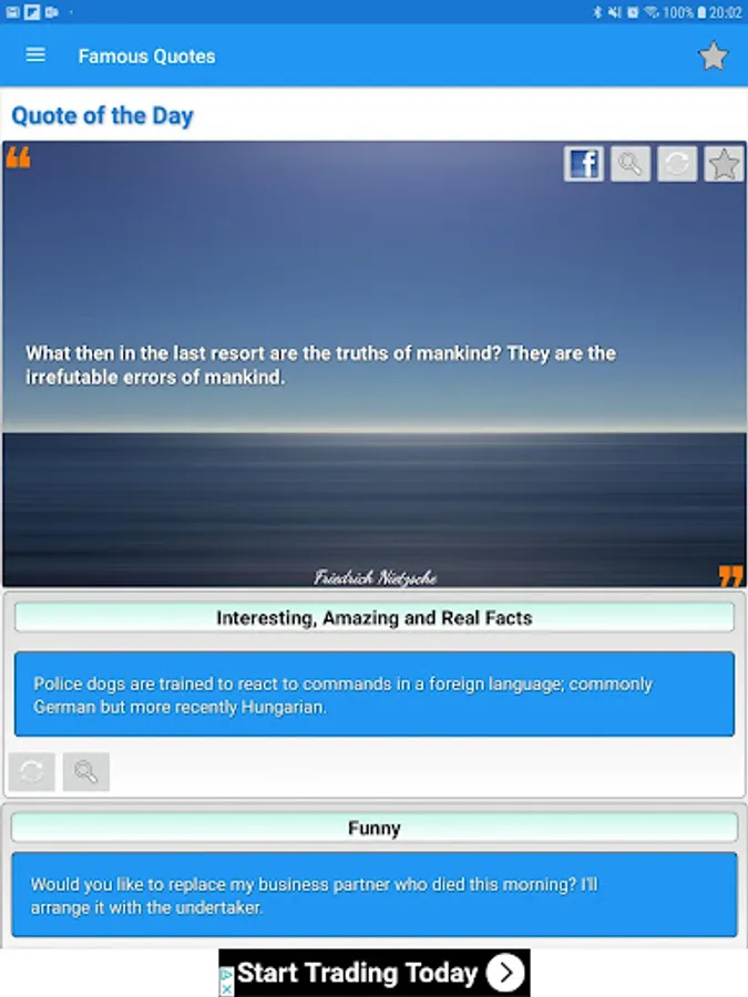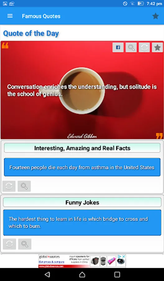 🔥 7) All the inspirational quotes, and funny jokes, included the quote of the day, can be shared with your friends (i.e. Facebook share, whats app...)