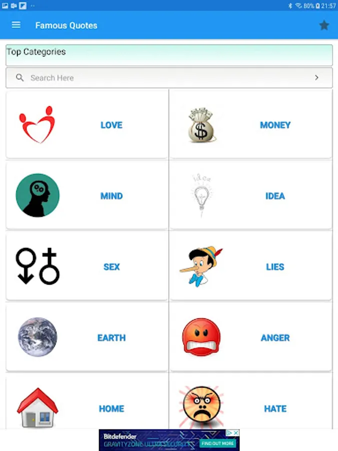 🔥 3) "Quote search by Category" (i.e. love quotes, life quotes, motivational quotes,...)