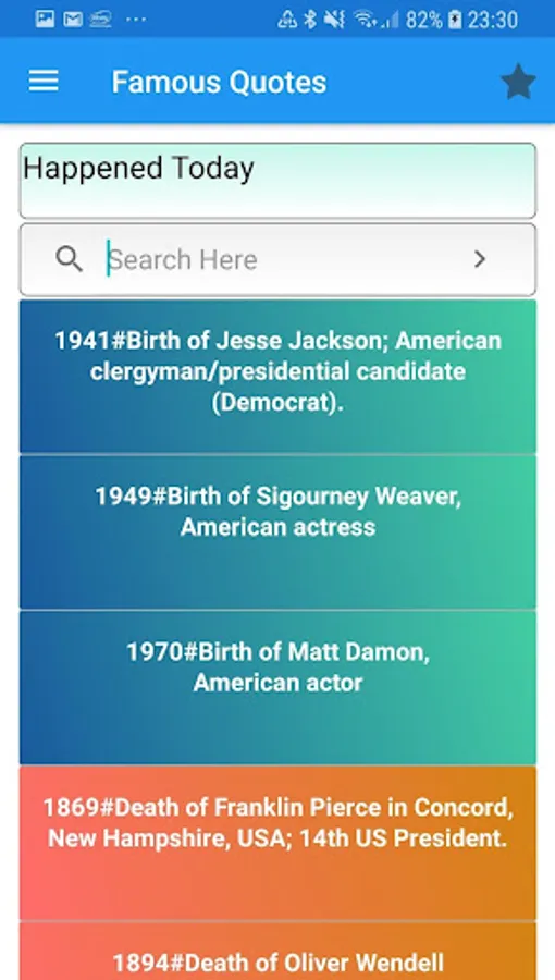 🔥 6) "Happened today" section, to discover what happened in the history.