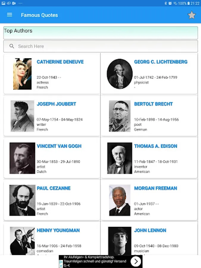 🔥 2) "Inspirational Quote search by best authors (i.e. Einstein quotes, Woody Allen quotes,...)