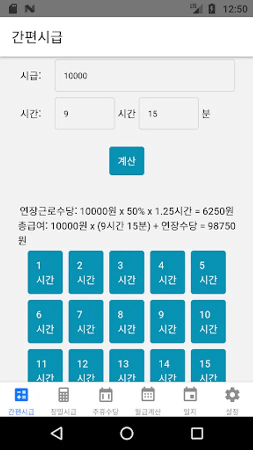 Simple hourly wage calculation: quick and easy calculation of basic hourly wage + overtime pay