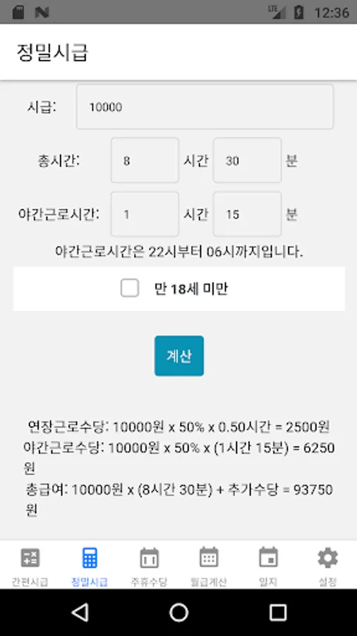 Precise hourly wage calculation: Calculate basic hourly wage + overtime pay + night work allowance