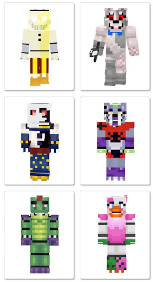 We collected the best selection of FNAF Security Breach skins for Minecraft fans. Here you can download or install skins through your Minecraft Pocket Edition. We have a lot of FNAF Security Breach skins for minecraft that can applied to customized your minecraft charachter.