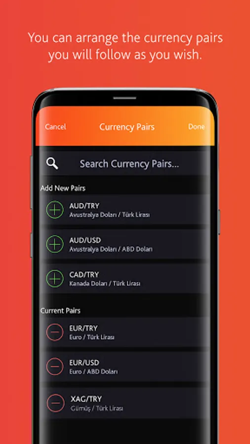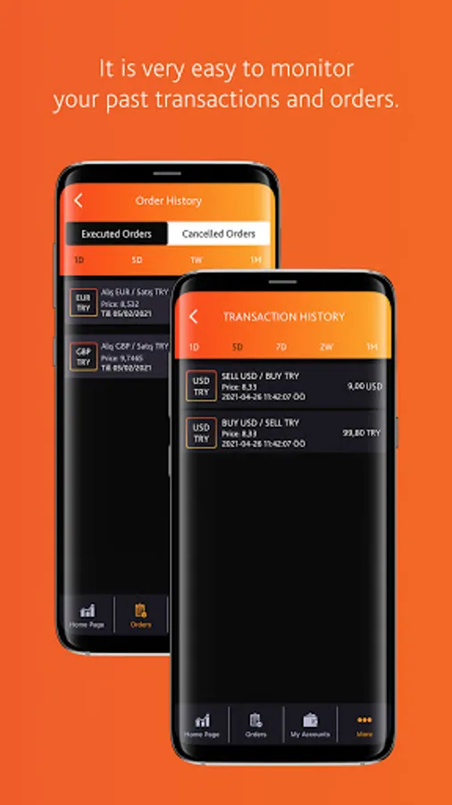 • By using the “Give Order” feature, without having to constantly monitor the exchange rates, even when the application is closed, you can make your transactions at any price you want.