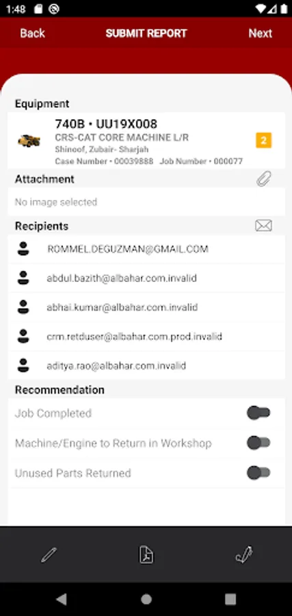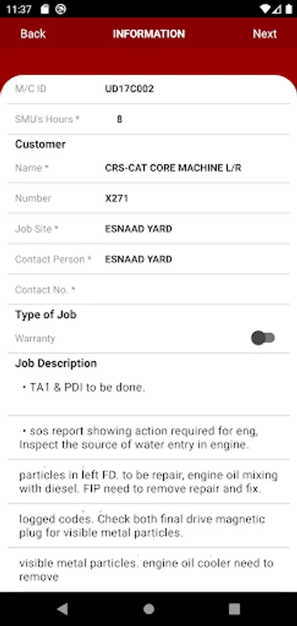- On demand, generate service reports complete with Photos, on checklist forms thru stages of PM, Running Repairs, Return to Ready, Pre-Hire & Off-hire