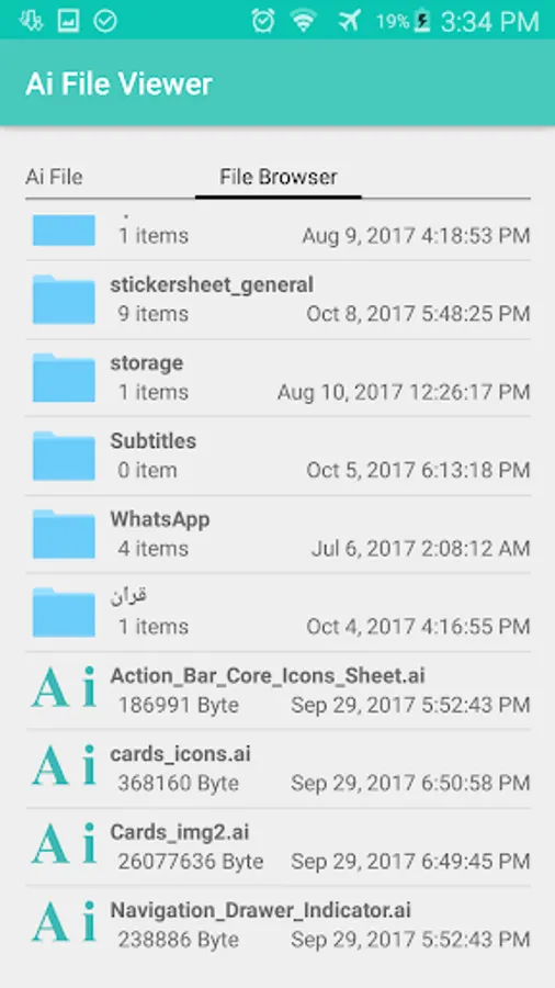 if you are in android 6.0+, give it a storage permission then click any Ai file to view by this app.