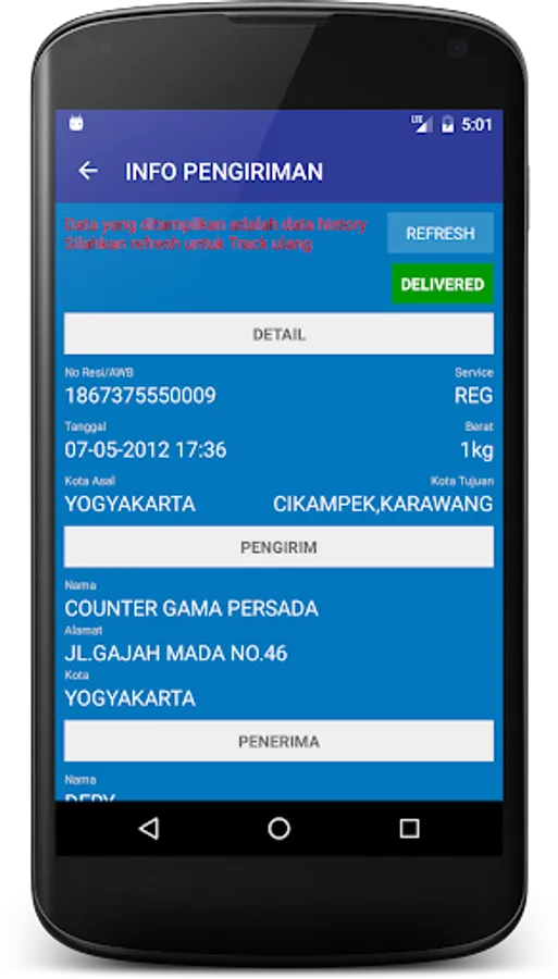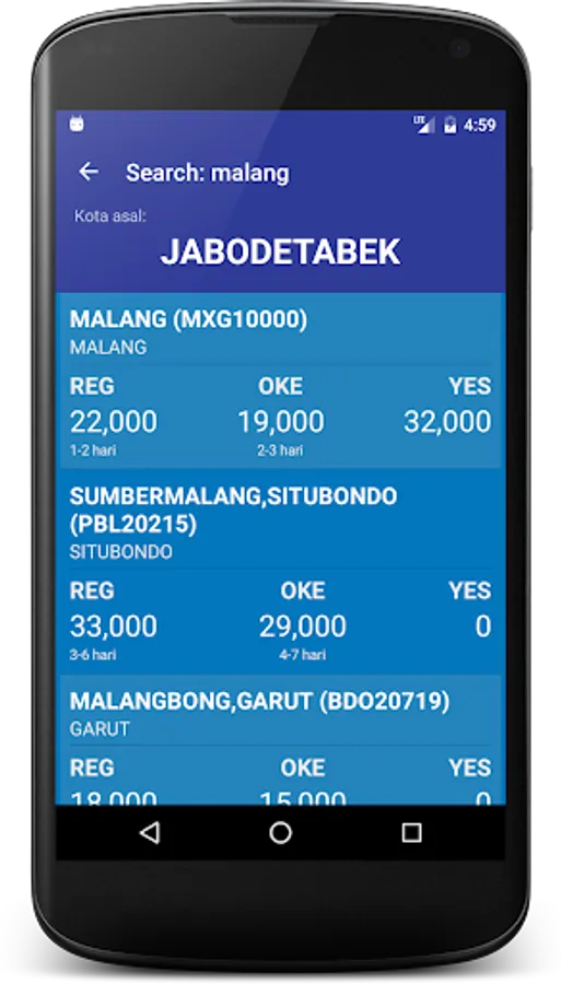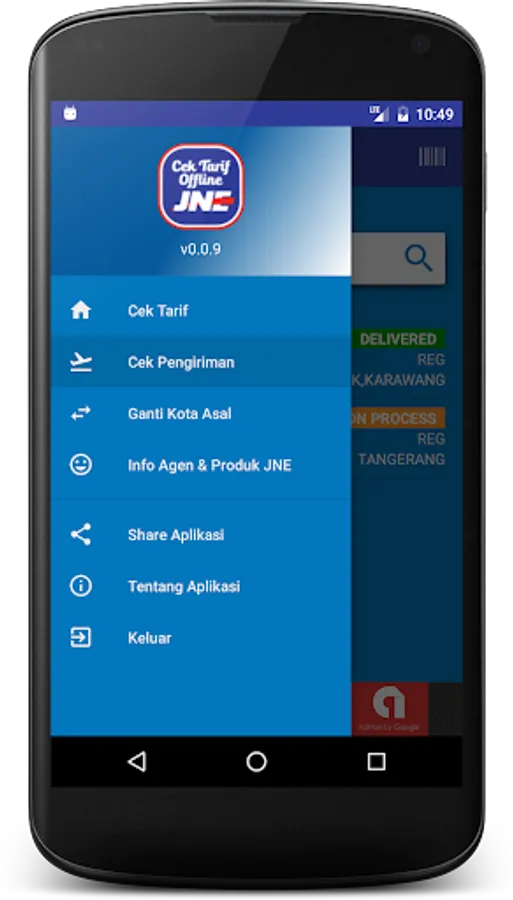 Checks JNE city of origin (20 cities) to quickly and accurately because it does not require an internet connection to get the pricing information, is equipped with a check shipment status by entering a receipt number or by scanning a barcode.