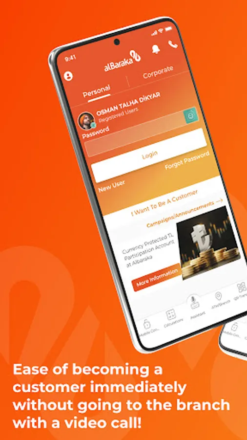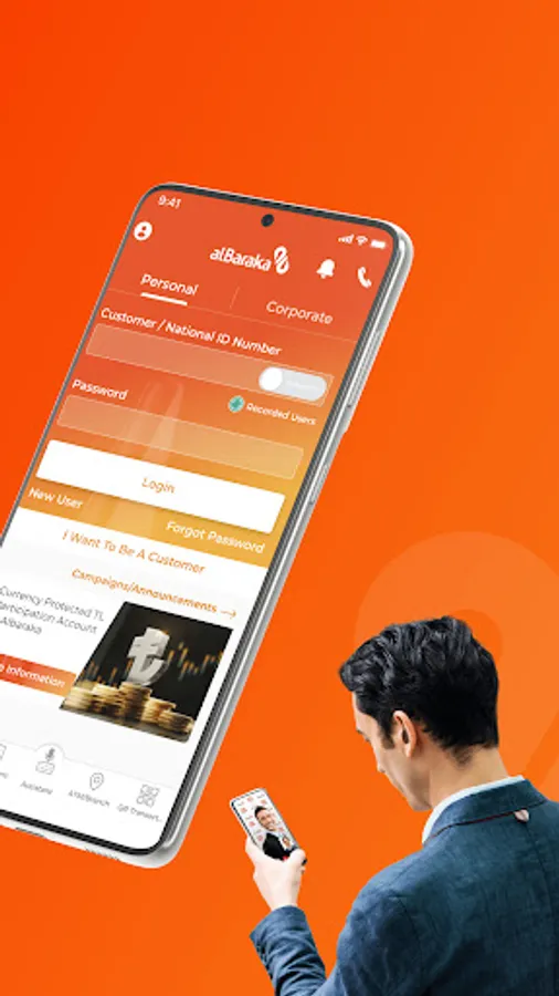 Albaraka Mobil uses two-factor validation. You can log into application either with your customer / Turkish national ID number and password or with face recognition function.