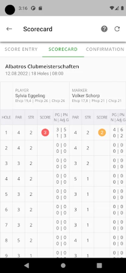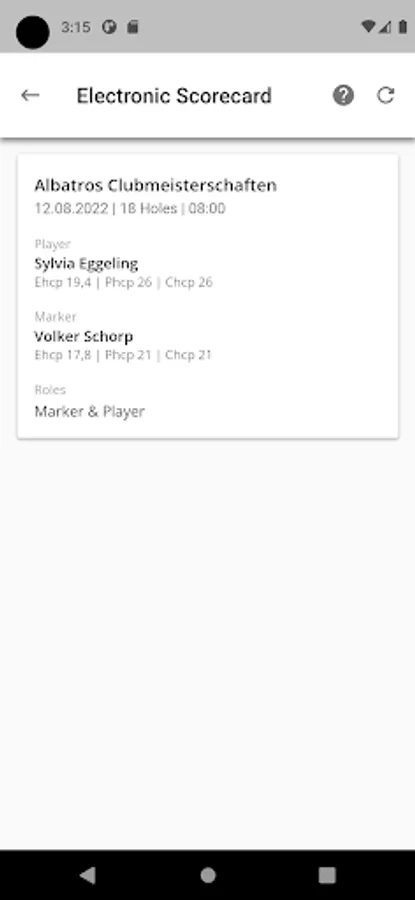 This application enables golfers, as a player or scorer, to record the scores of a tournament or RPR round in competitions rounds or RPR rounds for which electronic scoring is permitted. It afterwards enables to transmit the results directly to the club's Albatros system. The prerequisite for use is that the host golf club uses the "Albatros 9" software version.