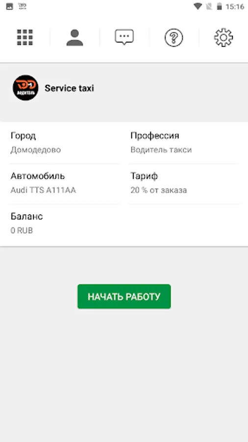 Application for working as a taxi driver or