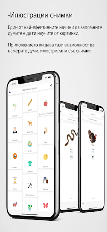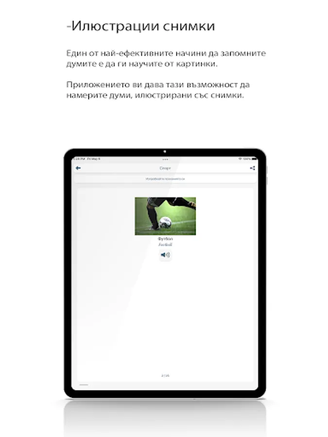One of the most effective ways to memorize words is to learn them from a picture. The application allows you to find words illustrated with pictures.