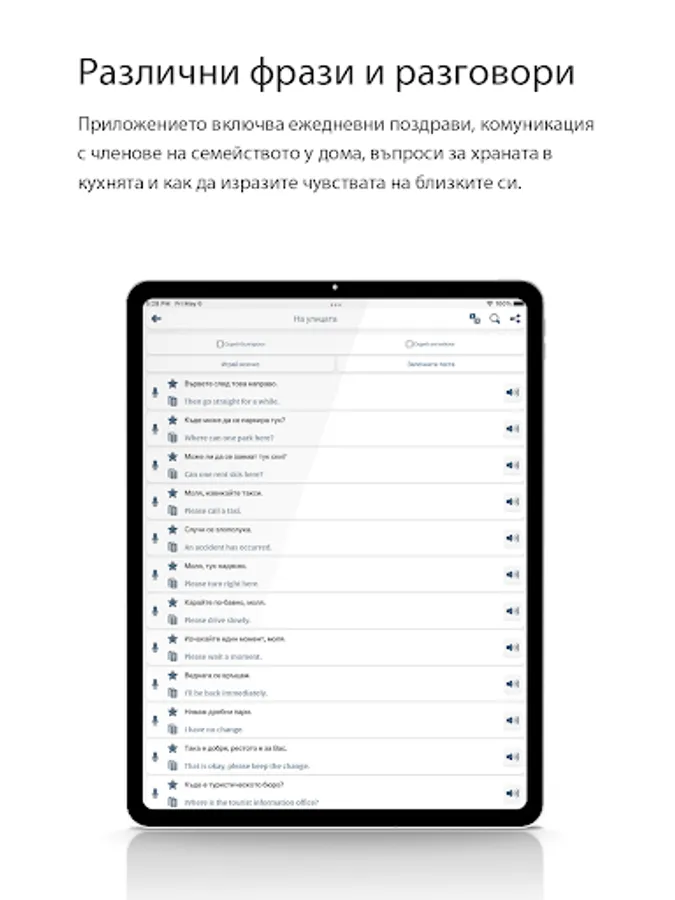 The app includes daily greetings, communication with family members at home, questions about food in the kitchen and how to express the feelings of your loved ones.
