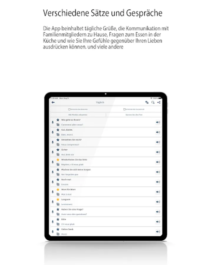 -Practice reading, speaking, listening and writing. The application also offers the possibility to listen aloud to the sentence of French speakers.