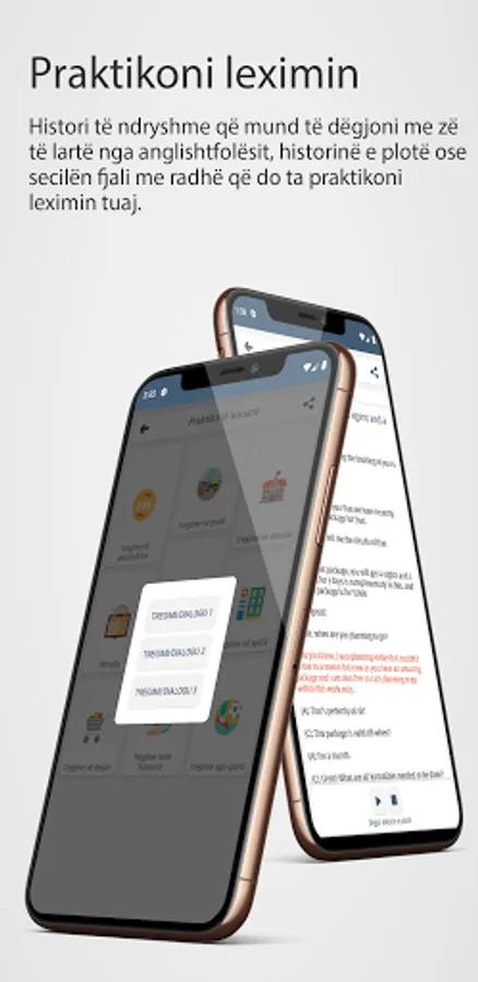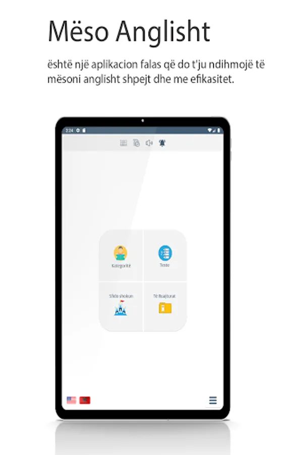 "Përmirëso aftësitë tuaja në gjuhën angleze me aplikacionin tonë të avancuar për mësimin e gjuhës angleze nga gjuha shqipe. Kjo platformë inovative ju ofron një eksperiencë interaktive dhe të përshtatshme për të mësuar dhe zhvilluar shkathtësitë tuaja në gjuhën e dytë më të folur në botë.