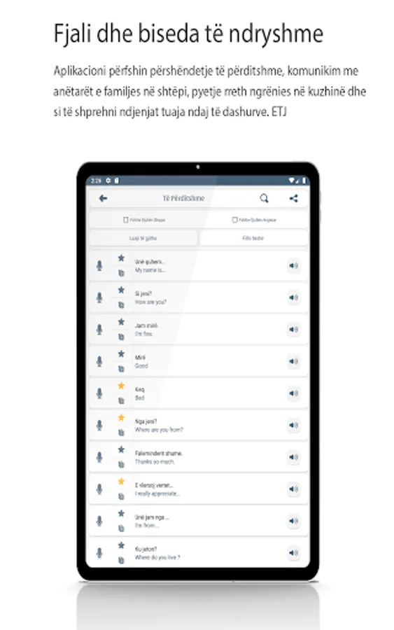 Aplikacioni ynë ofron një përvojë të përdoruesit tërheqëse dhe të dobishme për të ndihmuar ju të arrini rezultate të shkëlqyera në mësimin e gjuhës angleze. Mos hezitoni, shkarkoni aplikacionin tonë sot dhe filloni udhëtimin tuaj drejt mjeshtërisë gjuhësore në gjuhën angleze!"