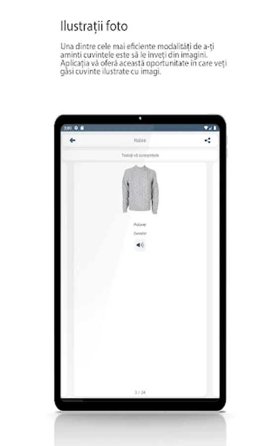 One of the most effective ways to remember words is to learn them from pictures. The application gives you this opportunity where you will find words illustrated with pictures.