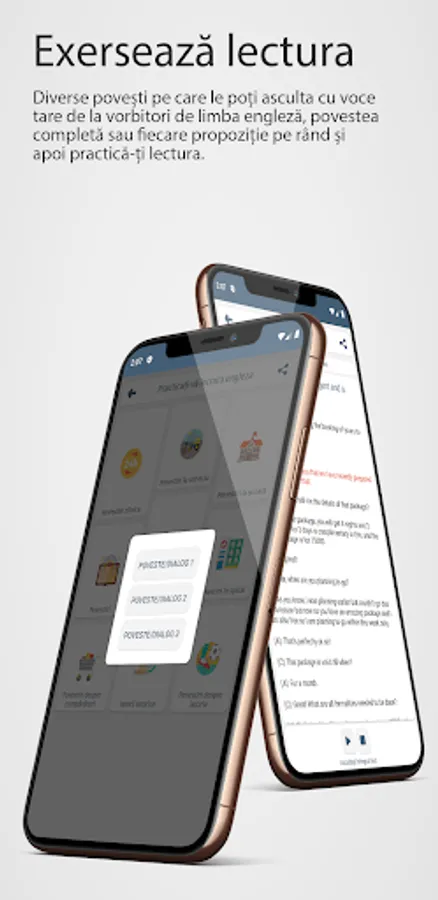 Practice reading, speaking, listening and writing. The application also offers the possibility to listen to the sentence aloud from English speakers.