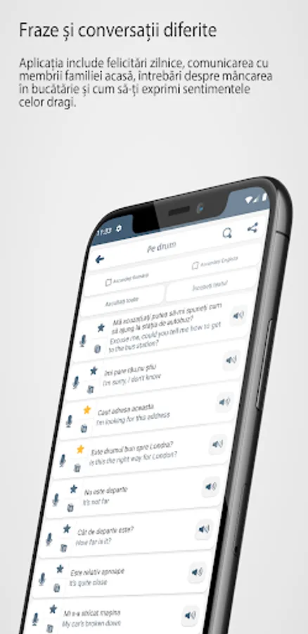 Test your knowledge on different types of tests offered by the app, such as: connecting words that have the same meaning, finding the correct answer from the picture, translating the word or sentence, listening to the sentence and then writing it, pronouncing the sentence that appears, and others.