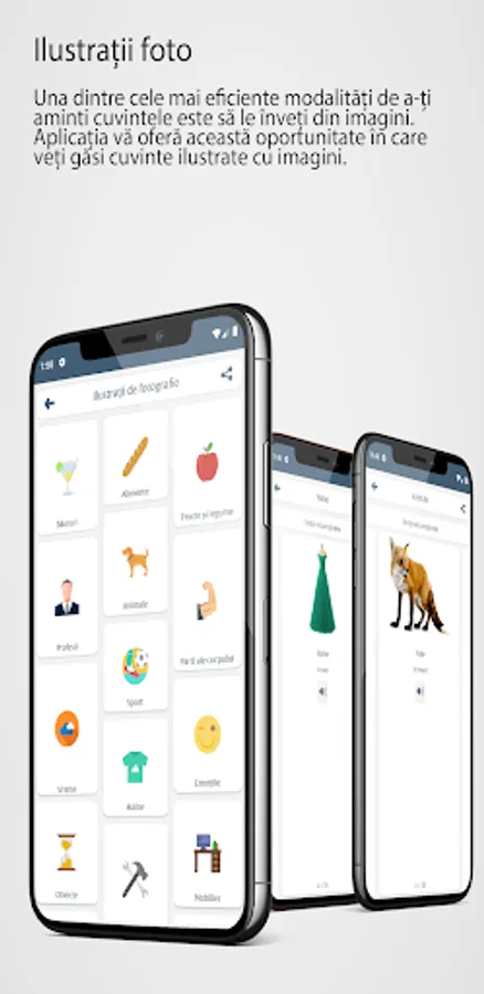 One of the most effective ways to remember words is to learn them from pictures. The application gives you this opportunity where you will find words illustrated with pictures.