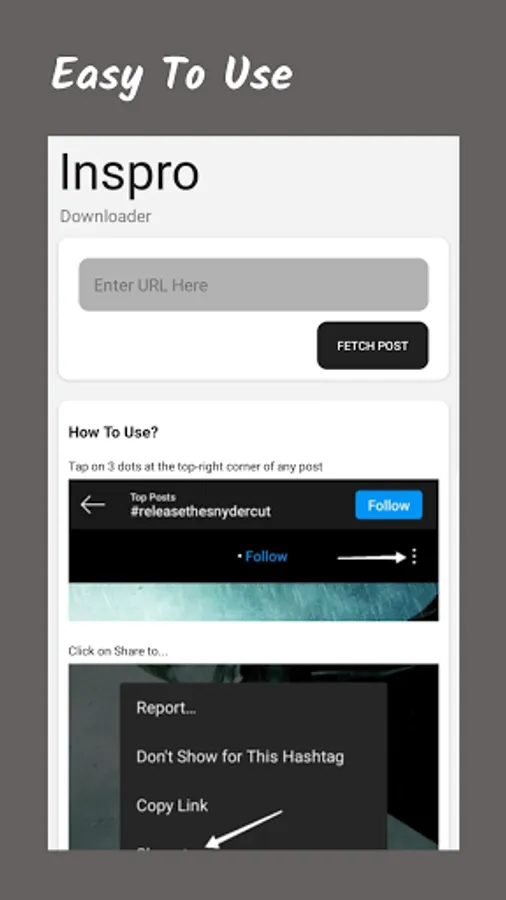 Inspro downloader is easy with a neat and clean user interface to download the Instagram post including images and videos without log in