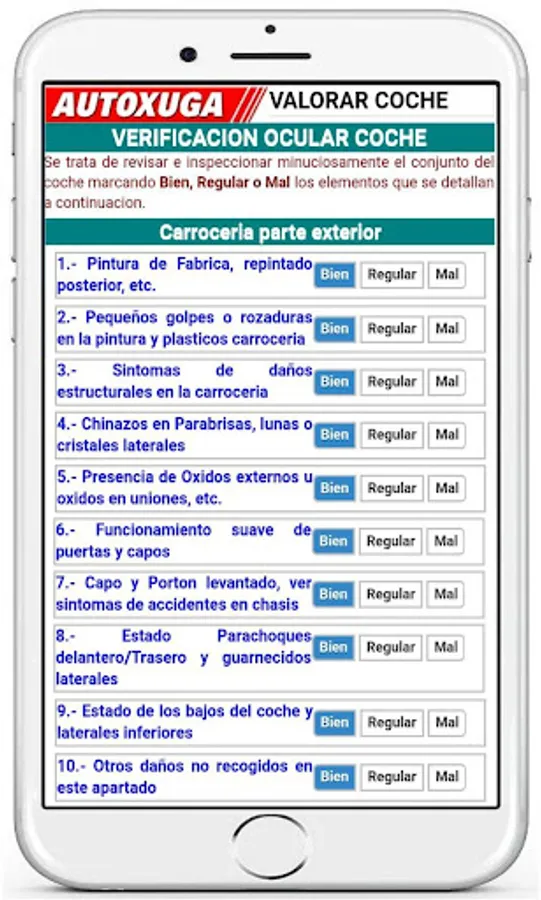 Before making the assessment of the car it would be important to check the ECUs or Electronic Control Units of the Car with the Autoxuga diagnostic apps or with a Professional Diagnosis Team to write down in this app the failures, breakdowns and state of use of the electronic components of the car so that the final price of the car fits the reality